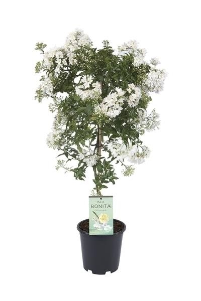De Solanum jasminoides heeft kleine witte bloemen die gevormd zijn als een ster. Deze bloemetjes hebben een frisse jasmijngeur.